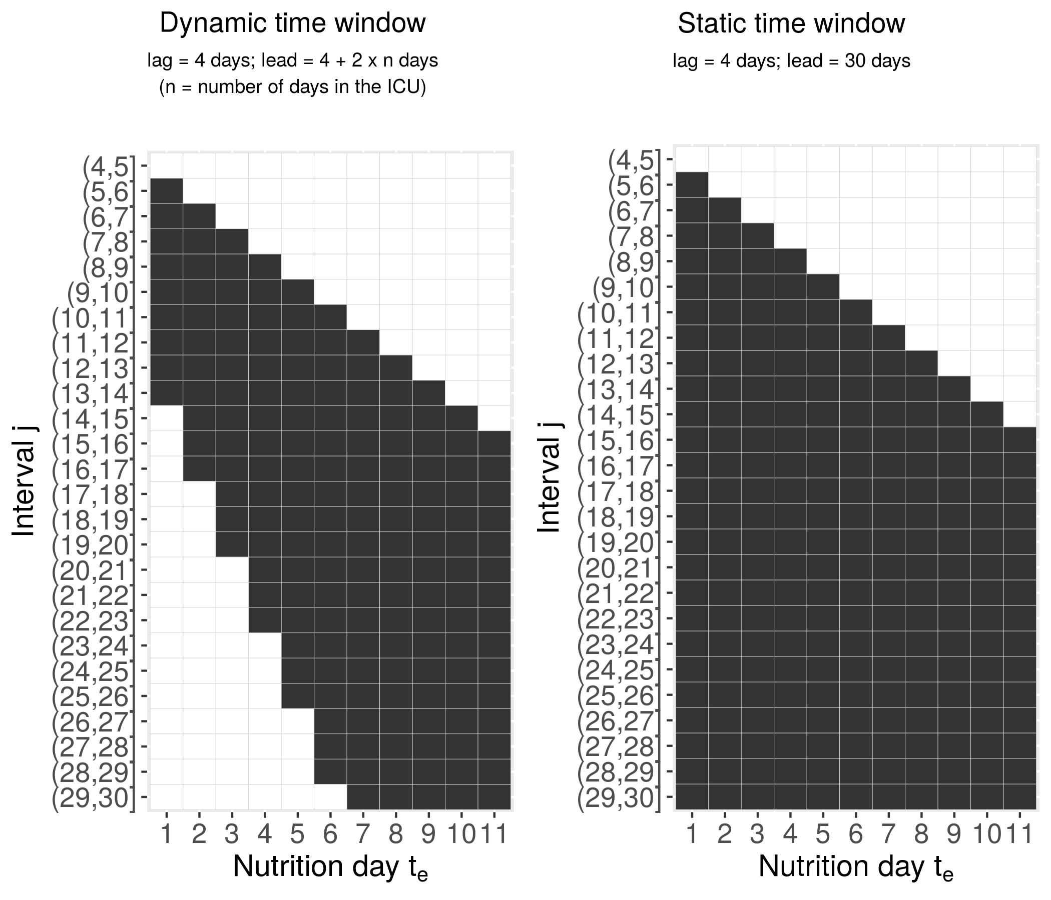 the (delayed) effect of nutrition also depends on the amount of nutrition (caloric adequacy) provided, possibly non-linearly