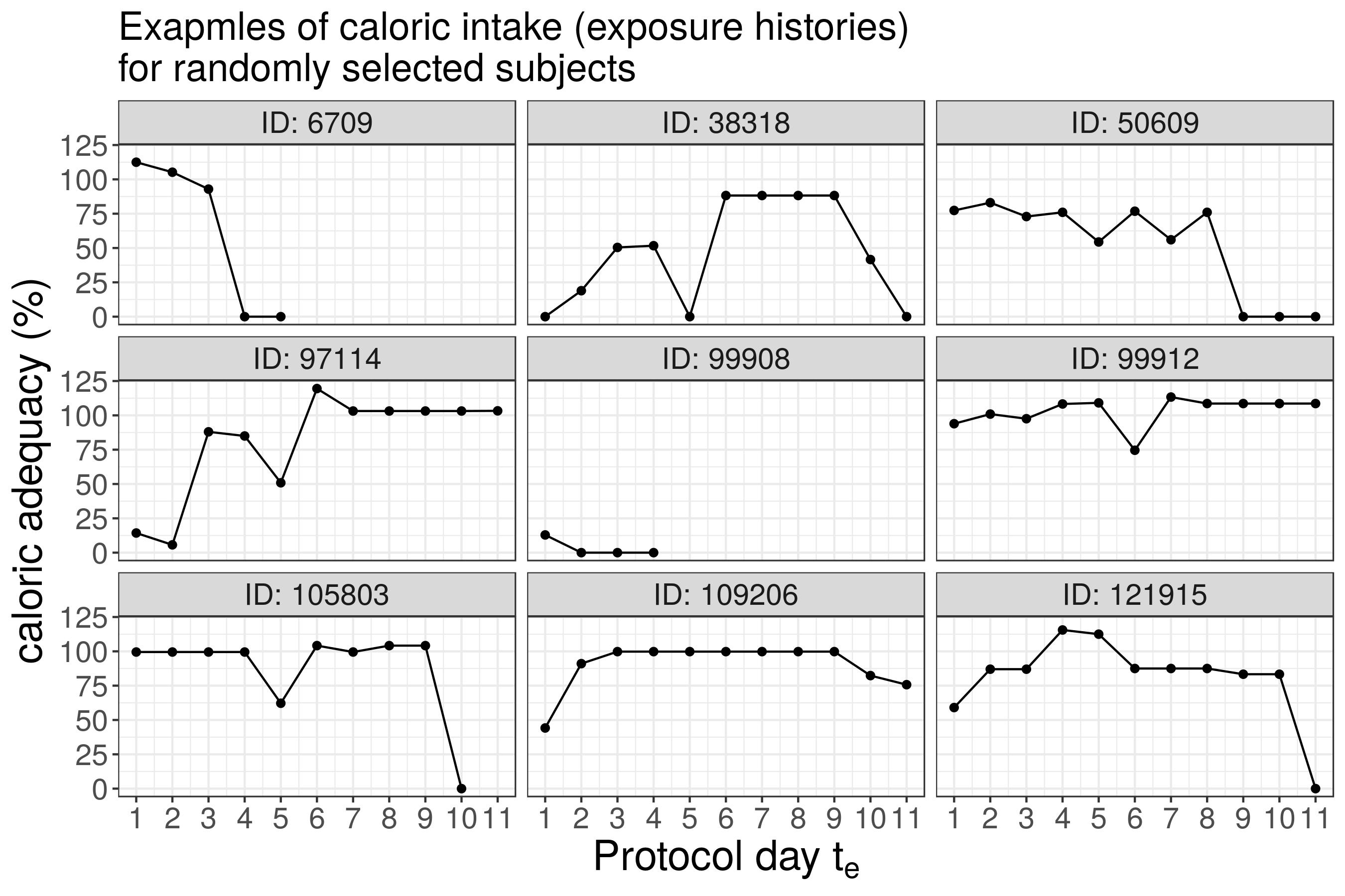 the effect may be cumulative (i.e., 5 days of malnutrition in a row may be worse than only 2 in a row or 5 days malnutrition scattered throughout the follow up while on the other days "correct" amount was provided)